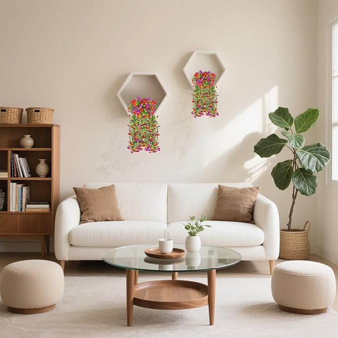 - UV Resistant & No Fade: The artificial hanging flowers for outdoor for is crafted from silk fabric, these fake flowers are UV-resistant and designed to withstand outdoor elements and no fade to keep their vibrancy in the sun. Stay fresh and beautiful all year round.