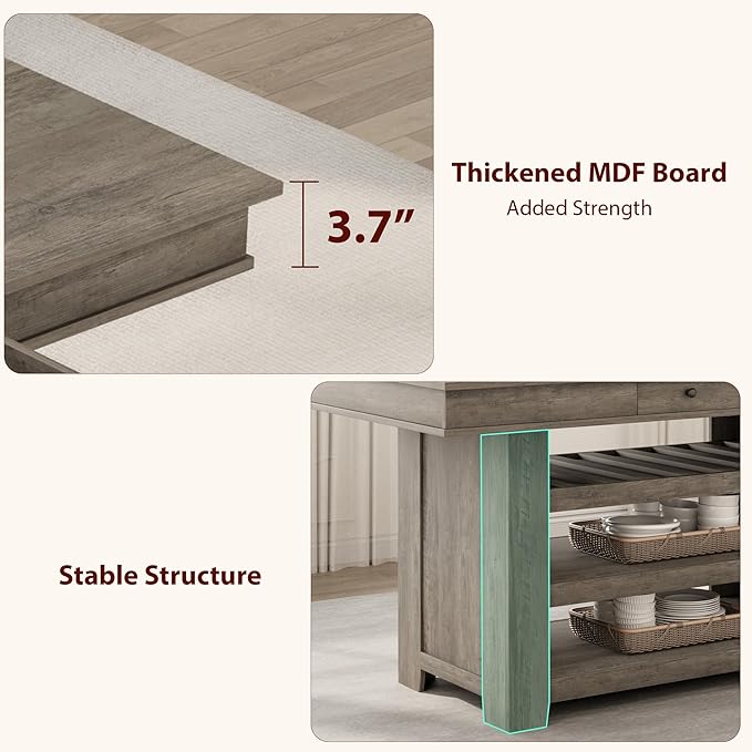 - 2. Large Tabletop & Storage Space: Enjoy generous table space and smart storage solutions with this tall dining table. Its extra-wide surface provides ample room for tableware, decor, and even doubles as a home office workspace. Its deepened wine rack securely holds bottles while the dual-tier shelving efficiently stores glassware vertically. Front and back drawers provide dust-free utensil storage with smooth-gliding access, maximizing organization for consistently tidy dining spaces