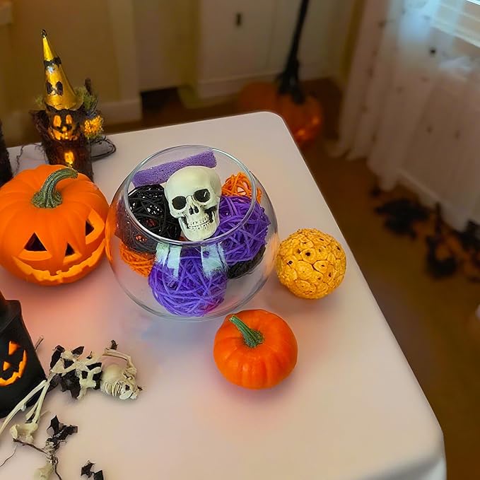 Qingbei Rina Halloween Decorative Balls for Bowls,Assorted Vase Filler for Centerpieces,Wicker Rattan Balls Decorative Orbs Woven Spheres,Bowl Fillers for Home Decor,Wedding(Skeleton)