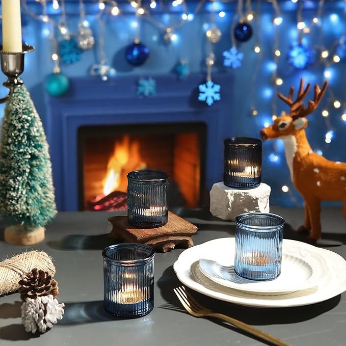 - Votive Candle Holders Set: You will get 36 pcs Blue Votive Candle Holders, abundant quantity, enough for your daily use. Each candle holder dimensions are 2x2.5inch.These glass tea light candle holders are the perfect addition to any table and can be used with tea light candles, flameless LED tea light candles to create a warm and inviting ambiance