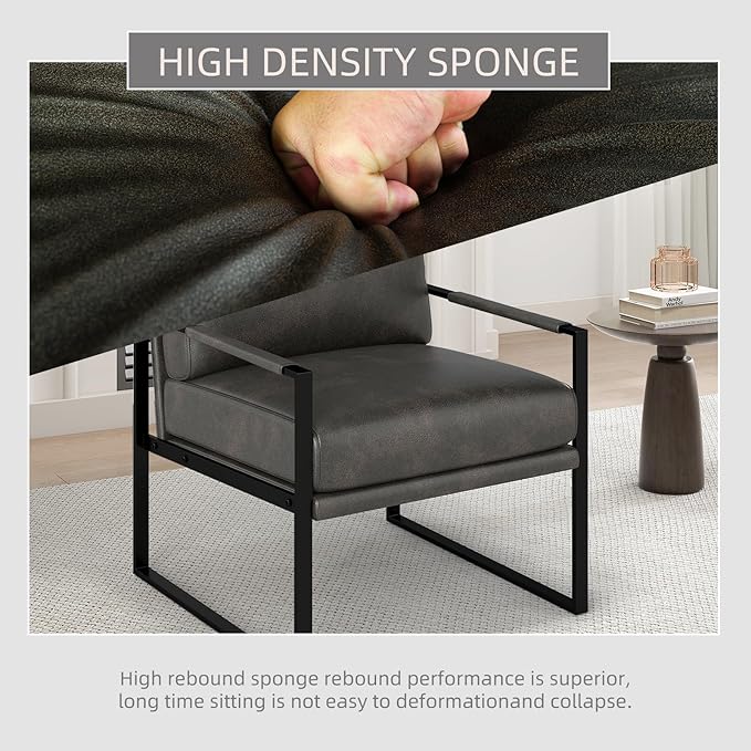 Phoenix Home Mid Century Modern Faux Leather Accent Chair, Metal Framed Armchair with Extra Soft Removable Seat Cushion & Backrest for Living Room Bedroom Waiting Room, Easy to Clean, Gray