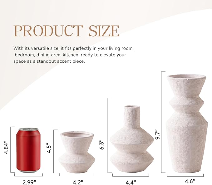 - 【Perfect Size】Large: 4.6"L × 9.7"H;Medium: 4.4"L × 6.3"H;Small: 4.2"L × 4.5"H. Featuring intricate detailing and a rich texture, this vase complements a variety of home styles—farmhouse, rustic, country, even modern. It effortlessly blends in with existing furniture and accessories, adding a timeless charm and harmonious look to your space.