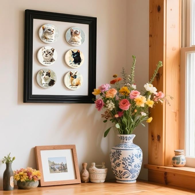 - Adorable Cute Cat Patterns & Stylish Decor (Frameable Art!):Features charming and cute kitty cat designs that add a delightful touch of personality to any space — on your tabletop OR framed on your wall! These aren't just coasters; they're miniature works of art! Easily pop them into frames to create unique wall decor for your living room, bedroom, kitchen, or even a cozy cafe. Perfect for home and kitchen decor, desks, or as office decor for women who love feline friends.