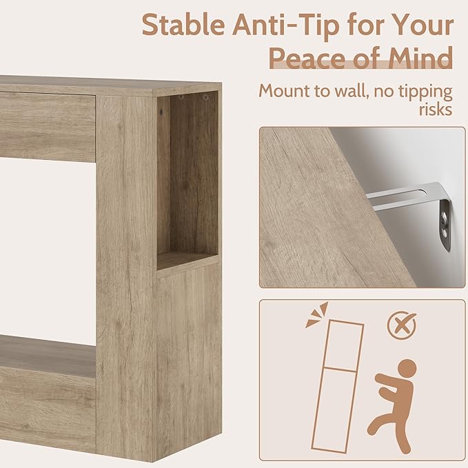 - Console Table with Drawer & Storage Shelves: Unlike many basic Console tables, this one combines style with smart storage—featuring an oversized drawer for hidden essentials, open side shelves for quick access, and a wide lower shelf perfect for baskets or books. The 47-inch tabletop also offers ample space for décor, lamps, or trays