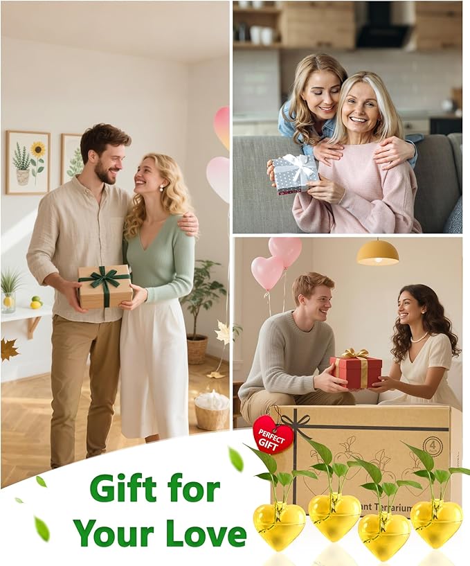 - Home Decor:4 Pcs heart-shaped glass terrariums perfect for displaying water-rooted cuttings, small air plants, succulents, or delicate faux florals. Instantly adds a touch of nature-inspired romance and greenery to any room