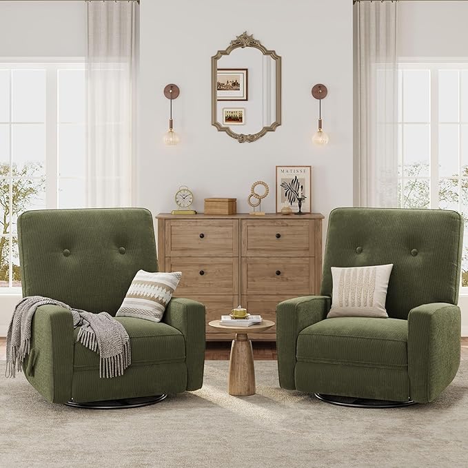Recliner Chairs, Swivel Rocker Recline, Glider Recliner Nursery Chair for Adults, 360° Swivel Glider Rocking Chair for Living Room, Bedroom, Office, RV, Small Spaces, Corduroy, Green