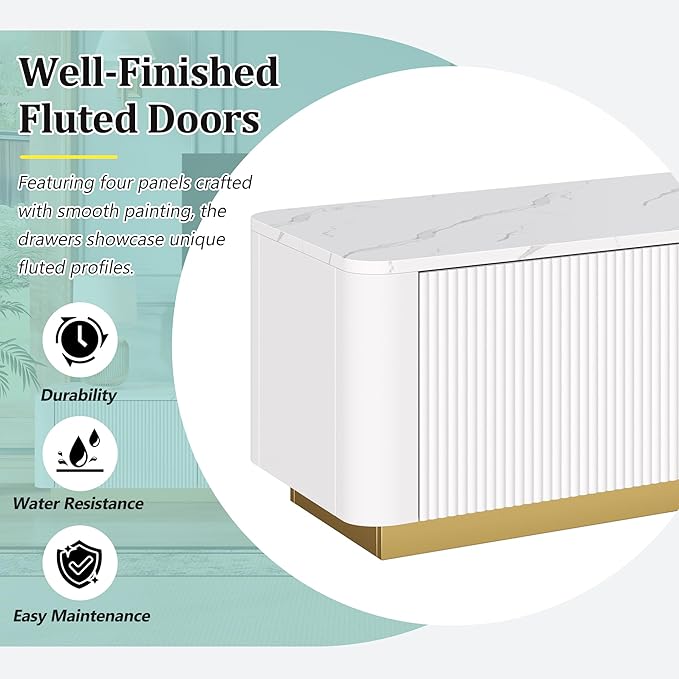 - [Well-Finished Fluted Doors] The drawers feature four smooth-painted panels with unique fluted profiles, ensuring a refined texture, durability, water resistance, and easy maintenance.