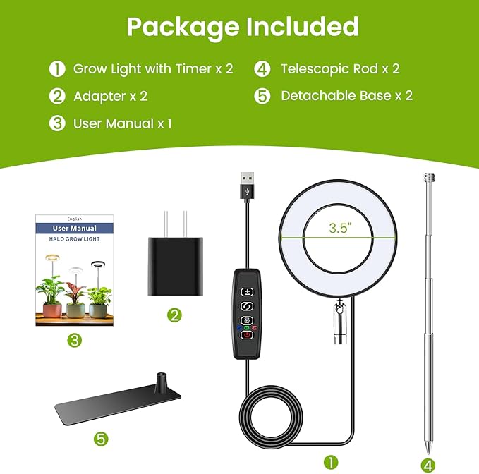 - Full Spectrum Grow Light: Equipped with 48 high efficiency diode LEDs, our halo plant light can provide all wavelengths from 380 nm to 760 nm, just like natural sunlight; Ideal for all growth stages of small plants