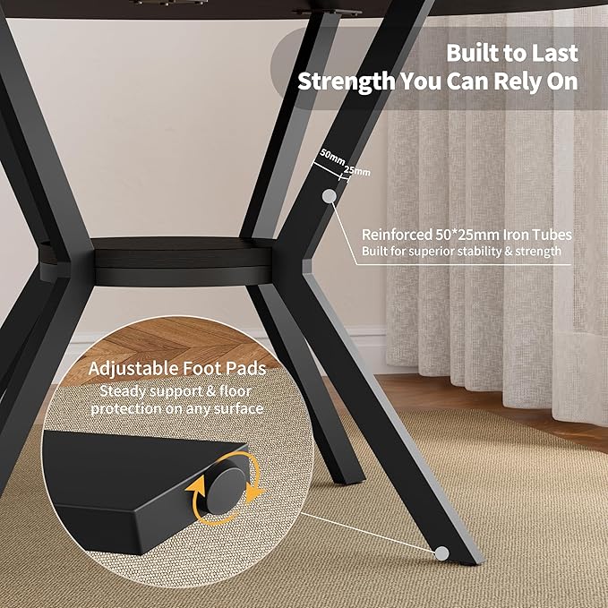 - Durable, Stable & Everyday-Ready: Built to withstand daily use, this wood dining table features a solid X-shaped base and heavy-duty 50x25mm steel legs for enhanced stability. The thick MDF tabletop is heat-resistant, scratch-resistant, and waterproof — easy to clean and ready for anything from busy breakfasts to weekend dinner parties. Adjustable, anti-slip foot pads ensure stability on uneven floors while protecting your surfaces.