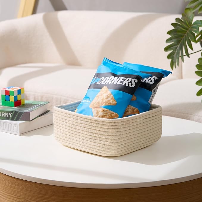 - [ Small Storage Baskets ] The 9.7 x 9.7 x 4.1-inch design is perfectly proportioned to store remotes, cosmetics, stationery, and other small items without cluttering your space. Instantly organizes living rooms, bedrooms, bathrooms, kids’ rooms, or entryways