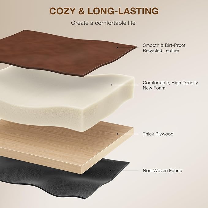 - 【Elegant Saddle Stool】The Memobarco makeup stool features premium 3mm synthetic leather upholstery for easy cleaning, with a 4-inch high-resilience foam cushion that delivers ergonomic comfort, and all-day relaxation.