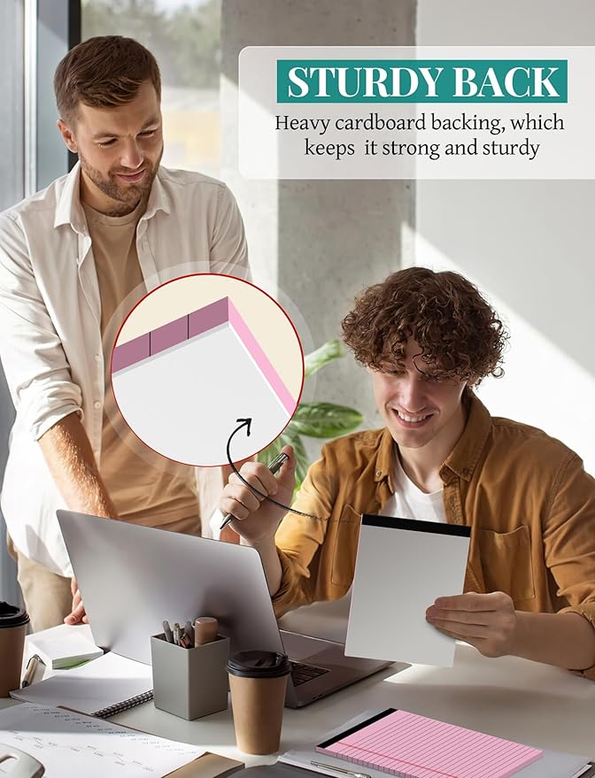 - 【KEEP NOTES SECURE】: Each pink notepads 5x8 has black top bindings. The 5 x 8 legal pads perforated top edge allows for easily and neatly removing individual sheets of paper. Small pink lined pads of paper 5x8 has sturdy header and bindings keep the pages of your crucial notes protected, your legal pad won't fall apart under pressure like some lesser lined notepads 5x8. Pink notepads have cardboard backing for extra support, lined paper pads 5x8 perfect for writing on the go.