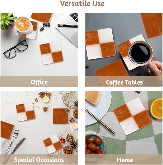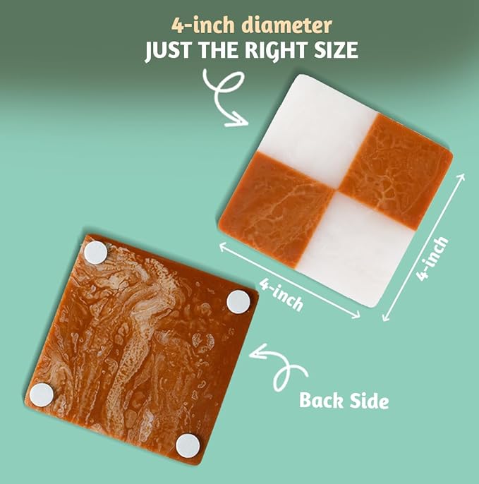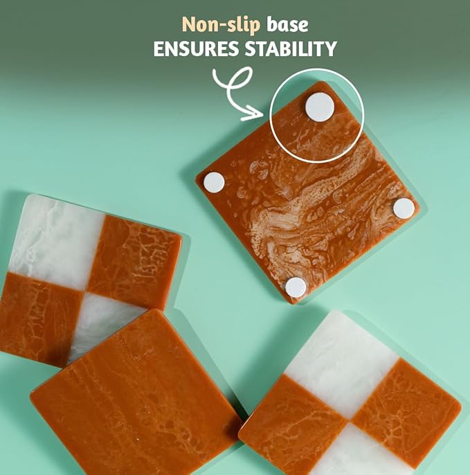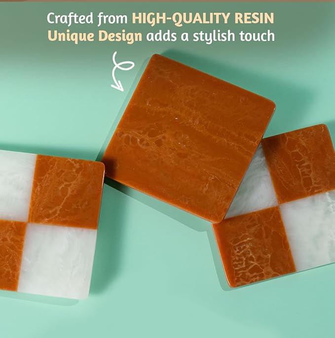 - UNIQUE AESTHETIC DESIGN – Crafted from premium resin, these table coasters or coaster set feature a lively multicolor checkered design that brings a sophistication to any space. The durable resin material ensures lasting beauty, making them both a stylish and practical choice for any setting. Perfect halloween coasters for halloween home decor.