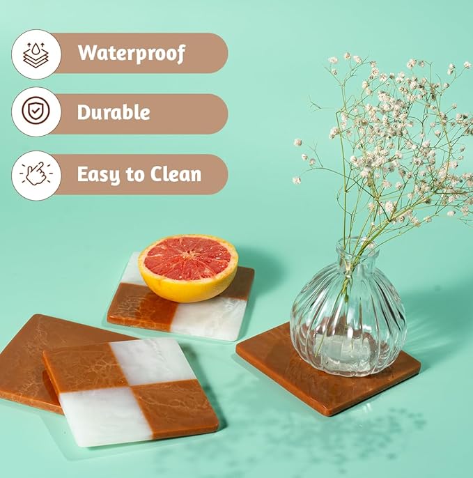 - WATERPROOF & EASY TO CLEAN – The waterproof hand poured resin material of these desk coaster or farmhouse coasters or desk decor for women ensures effortless spill cleanup for hassle-free maintenance. These boho coasters or rust coasters cute are hand wash-only and should not be soaked or put in the dishwasher.