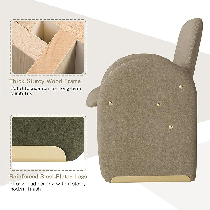 - 【Refined Structure, Thoughtful Details】With its sculpted wood armrests and sturdy gold steel-plated legs, this accent chair brings timeless elegance to your living room or den—strong, stylish, and ready to impress