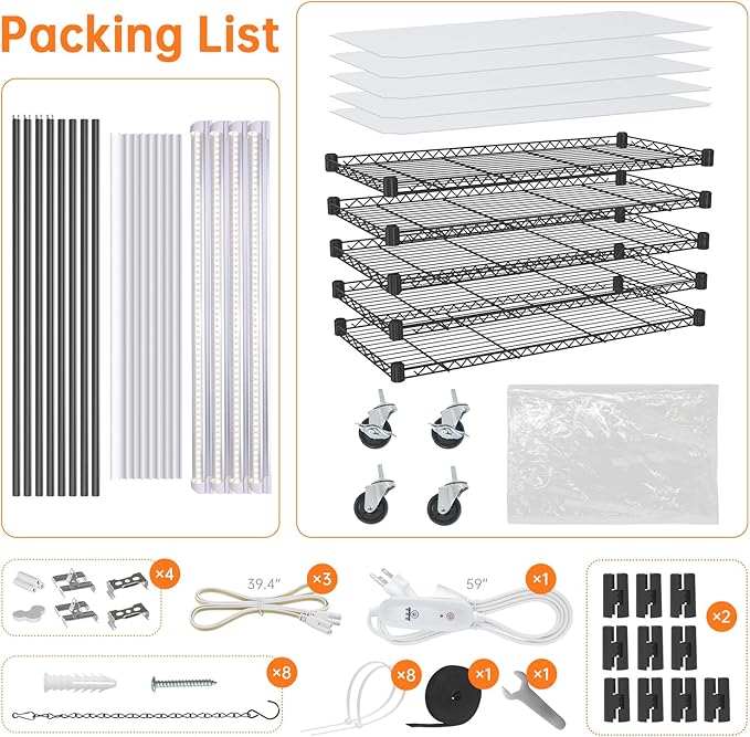 - Easy to Move & High Weight Capacity - This indoor gardening system features four heavy-duty industrial wheels, making it easy to relocate while securely locking in place. Its sturdy construction ensures excellent rust and oxidation resistance
