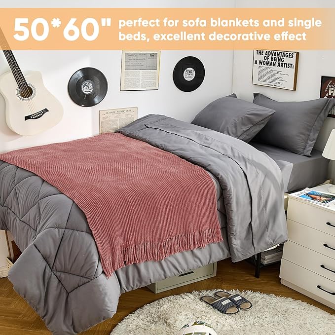 - 【FANTASTICAL COMBINATION】Inspired by minimalist neutral style,this farmhouse knitted throw blanket features a rich Coral Pink color and woven texture,complemented by elegant tassels. It adds cozy Christmas atmosphere to your home or living room.As and Christmas approach, drape this Boho throw blanket over your dining chairs or table,adding a stylish festive touch. After the celebrations,it’s the ideal cozy companion for resting on your bed,sofa, or couch, bringing ultimate comfort and warmth.