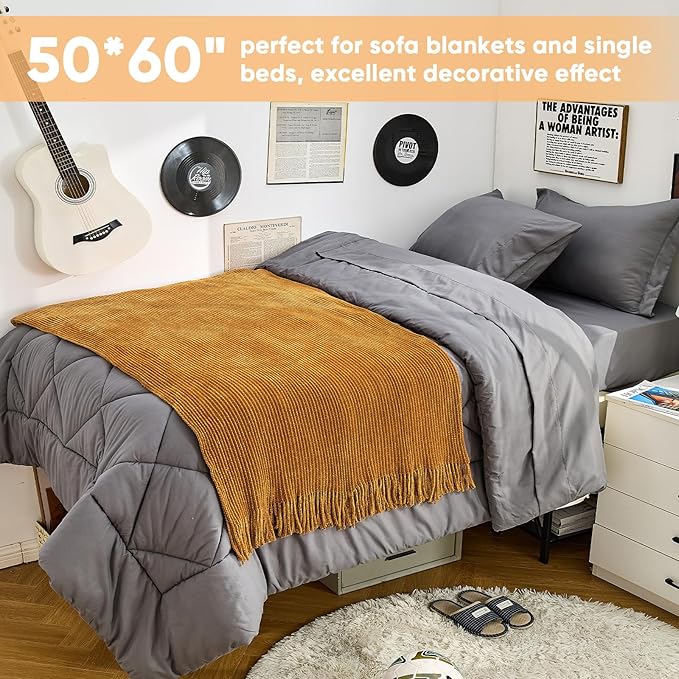- 【EASY CARE】This knitted throw blanket comes vacuum-packed, and after washing, it will become fluffy and soft again. We recommend washing it in cold water on a gentle cycle. Since it's made with chunky yarn, it's best to place the throw blanket in a laundry bag to prevent snagging and protect the fibers during the wash.