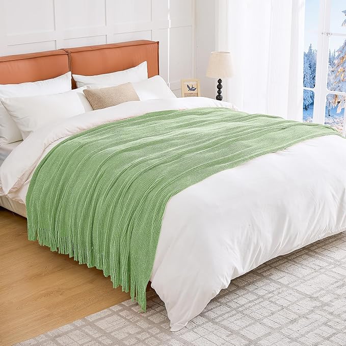 - 【FANTASTICAL COMBINATION】Inspired by minimalist neutral style,this farmhouse knitted throw blanket features a rich Basil color and woven texture,complemented by elegant tassels. It adds cozy Christmas atmosphere to your home or living room.As and Christmas approach, drape this Boho throw blanket over your dining chairs or table,adding a stylish festive touch. After the celebrations,it’s the ideal cozy companion for resting on your bed,sofa, or couch, bringing ultimate comfort and warmth.
