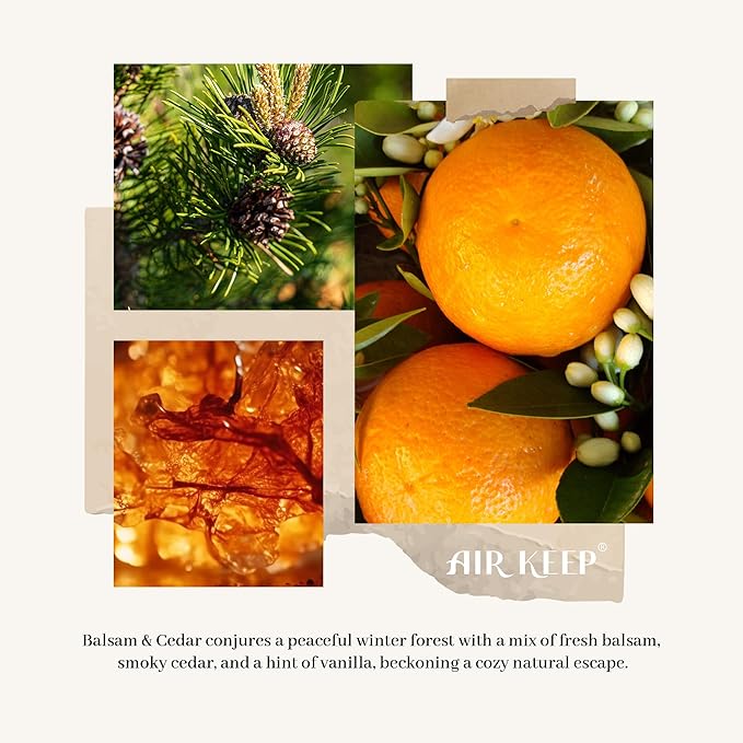 - Scent:Balsam & Cedar conjures a peaceful winter forest with a mix of fresh balsam, smoky cedar, and a hint of vanilla, beckoning a cozy natural escape