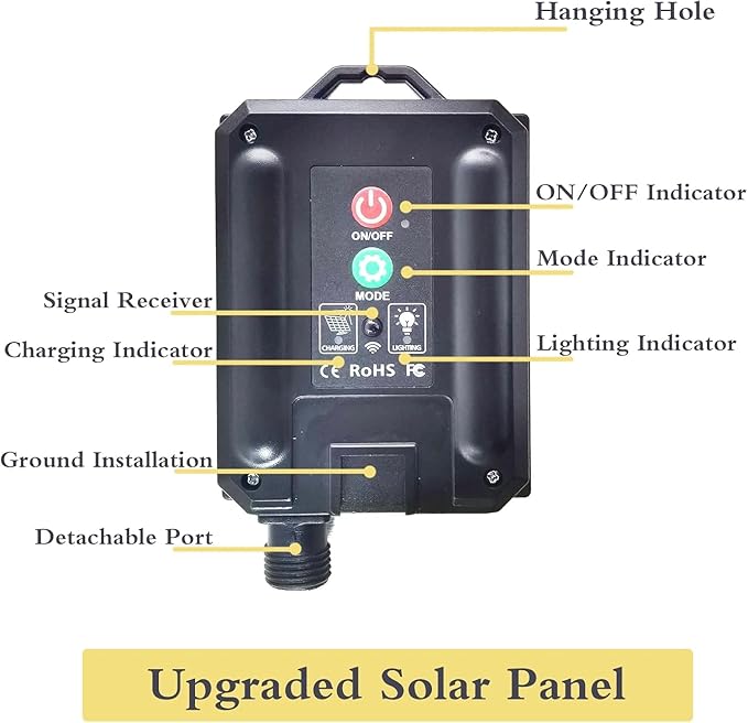 - 【Upgrade Solar Powered Starburst Lights】Solar outdoor firefly lights has been upgraded. There are 2 buttons on the solar panel, namely mode and switch, 3 indicators and solar panel with hook. When you use the solar fairy firework light, the switch-on indicator light shows red, and the light flashes with the mode; when the solar energy is charging, the indicator light shows green. The upgraded solar panels are easier to use.