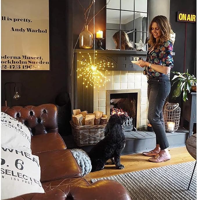 - 【SCOPE OF APPLICATION】The solar panel of the firework light is connected with the copper wire light string through the spiral port, can be disassembled and charged. Solar starburst lights can be used in indoor rooms, can decorate your Christmas tree, bedroom, wedding scene, cafe, window, can also be used as night light, outdoor decorative lights, corridor lights. Ideal for festive decorations, such as Christmas, with the effect of fireworks, creating a romantic atmosphere.