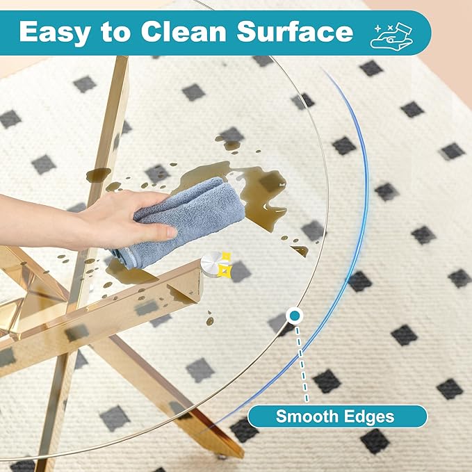 - Hassle-Free Maintenance: The smooth tempered glass surface wipes clean in seconds, resisting spills and stains. A simple, damp cloth restores its shine, while the metal frame requires minimal upkeep. Perfect for busy households.
