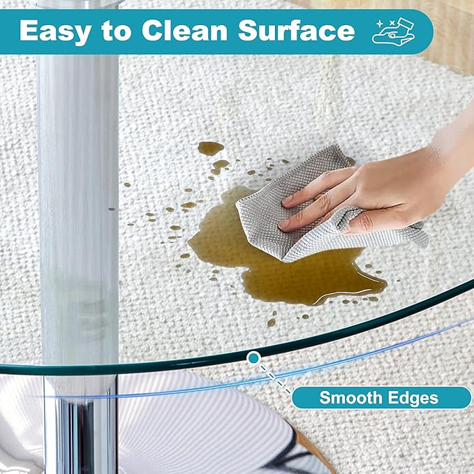 - Hassle-Free Maintenance: The smooth tempered glass surface wipes clean in seconds, resisting spills and stains. A simple, damp cloth restores its shine, while the metal frame requires minimal upkeep. Perfect for busy households.