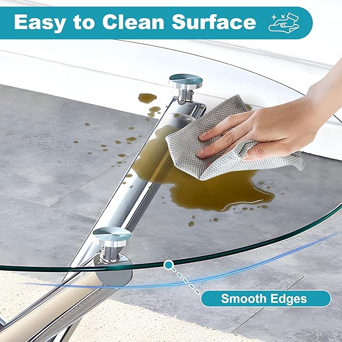 - Hassle-Free Maintenance: The smooth tempered glass surface wipes clean in seconds, resisting spills and stains. A simple, damp cloth restores its shine, while the metal frame requires minimal upkeep. Perfect for busy households.