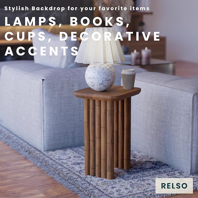 - [WALNUT FINISH, DESIGNED TO IMPRESS]: Handcrafted from solid mango wood with a walnut finish, this side table offers a stable and sturdy frame-an ideal piece of durable living room furniture that definitely turns heads