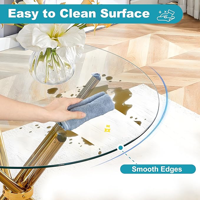 - Generous Round Tabletop: Featuring a spacious round tabletop, this piece offers ample room for family dinners, game nights, or decorative displays. The smooth glass surface provides a sleek backdrop for meals, while the rounded edges add a modern touch.