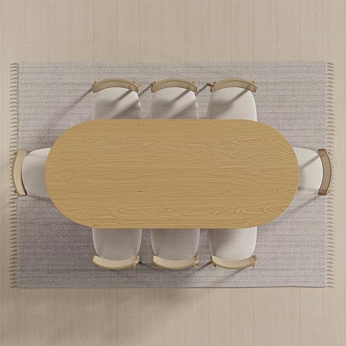 Casaphoria 79" Dining Table, Wicker Base Modern Kitchen Table for 4-6, Farmhouse Style with Oval Top & Wicker Base, Easy Assembly for Living Room, Kitchen, Natural Wood