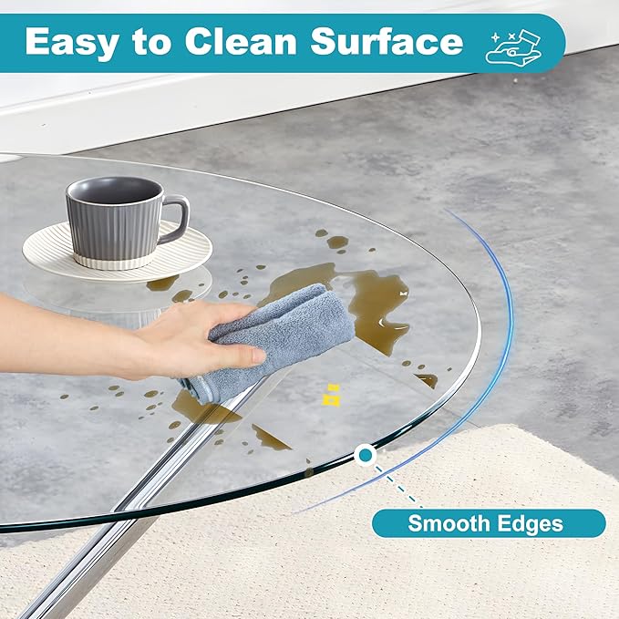 - Hassle-Free Maintenance: The smooth tempered glass surface wipes clean in seconds, resisting spills and stains. A simple, damp cloth restores its shine, while the metal frame requires minimal upkeep. Perfect for busy households.