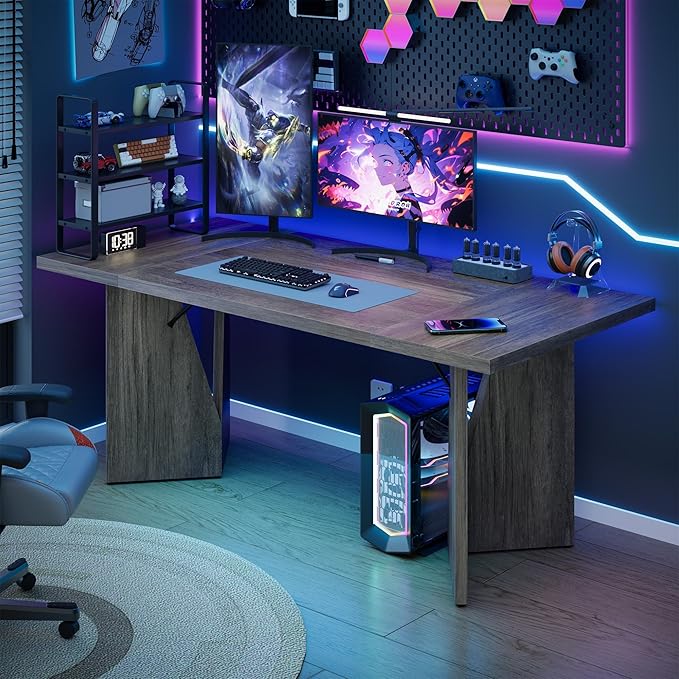 Garvee 70.9'' Dining Table for 6, Farmhouse Rectangular Kichen Table with Sturdy Frame, Wooden Thickened Long Desk and Dinner Desk for Dining Room, Kitchen, Office, Game Room(Grey)