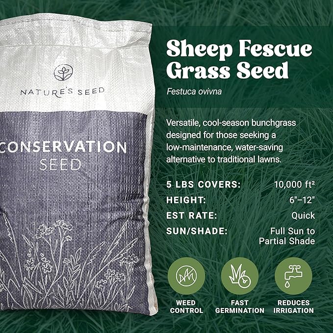 Nature’s Seed Sheep Fescue Grass Seed, Drought Tolerant, for Garden, Lawn, Yard, 5 Lbs