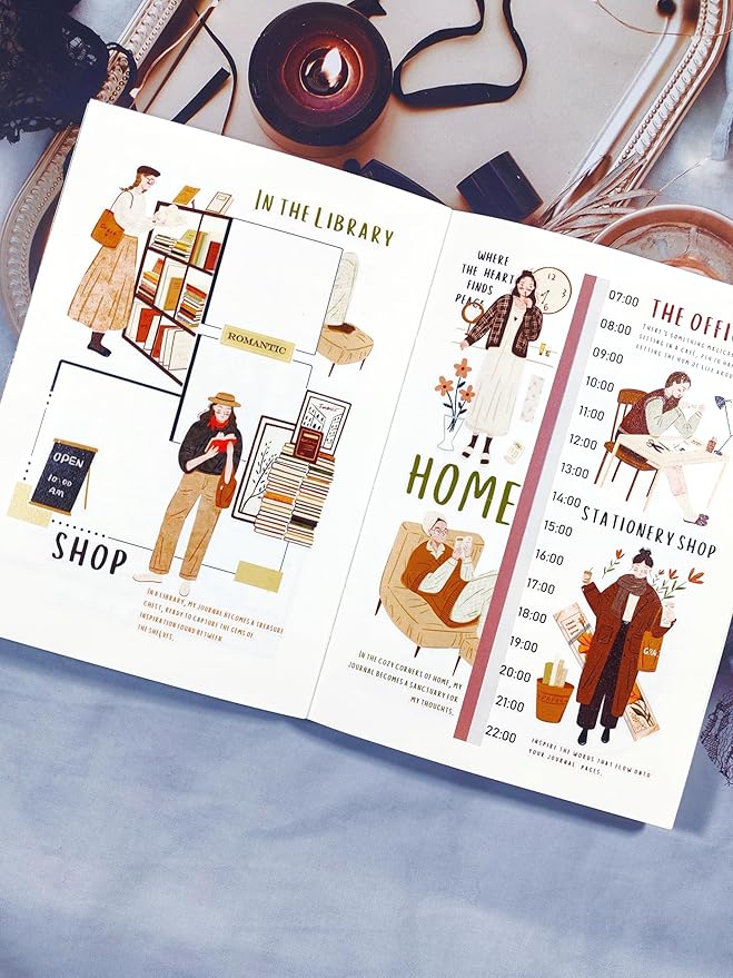 - Original Hand-Drawn Designs – Features exclusive artwork inspired by everyday planner moments. From cozy morning setups to productive workdays, each frame captures the charm of journaling life.