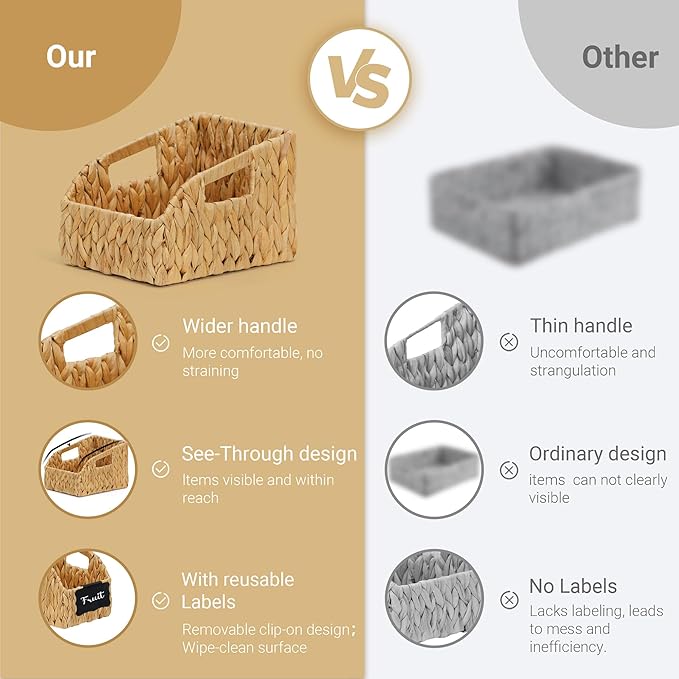 - Made from 100% natural, earth-friendly, renewable water hyacinth, the kitchen storage baskets for pantry help reduce our impact on the environment.