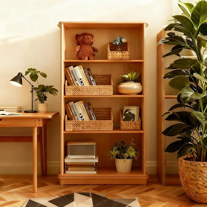 Wicker Baskets for Organizing,Pantry Baskets with Built-in Handles, Handwoven Wicker Storage Basket, Water Hyacinth Storage Bins for Shelves, 3 Pack, Natural 2 Set