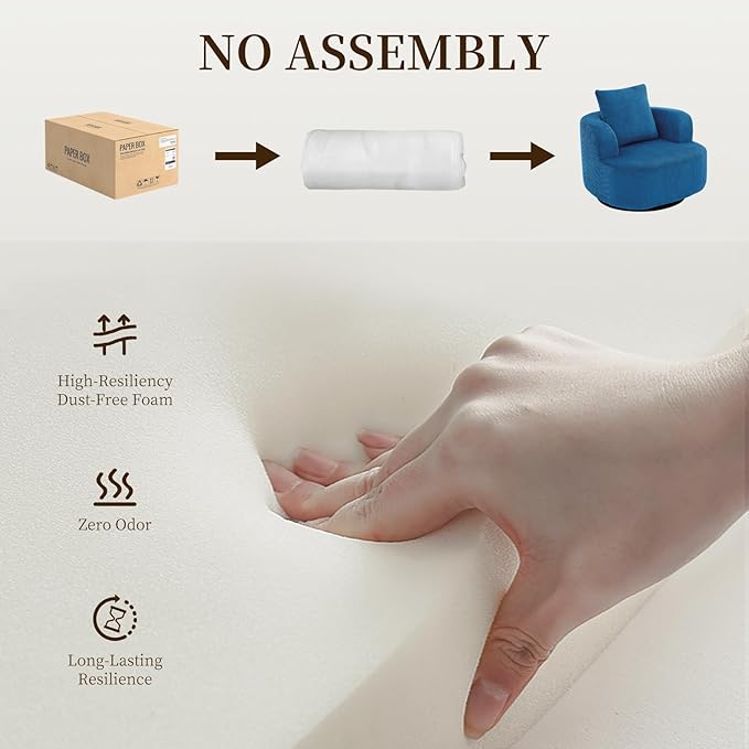 - [SUPERIOR COMFORT & SUPPORT] This swivel barrel chair experience cloud-like softness with premium high-resilience foam cushioning, paired with a removable back support pillows. The semi-reclined design and extra-wide seat 34" ensure ergonomic comfort for all body types.