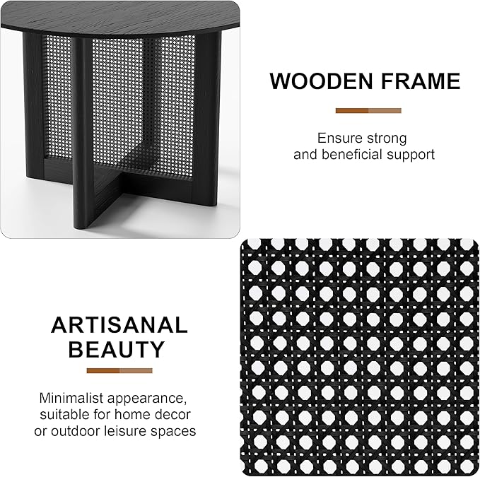 Casaphoria 52" Dining Table, Wicker Base Modern Kitchen Table for 4-6, Farmhouse Style with Round Top & Wicker Base, Easy Assembly for Living Room, Kitchen, Black