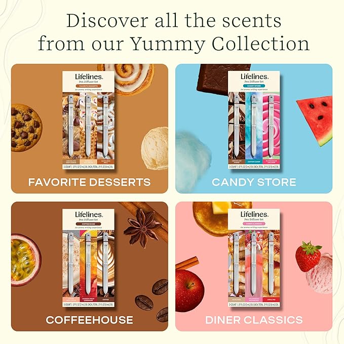 - Lifelines Pen Diffuser in Cinnamon Roll: Immerse yourself in an aroma writing experience with a pen that diffuses the delicious, sweet scent of Cinnamon Roll as you write. Pen features a 1.0mm black ballpoint tip and an incredibly comfortable grip. Includes 2 ink refills.