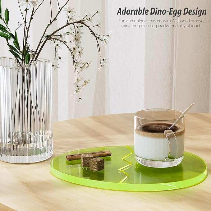 Acrylic Coaster Decorative Plates,Office Desk Accessories, Clear Dinosaur Egg Shape Coffee Cup Decor, Perfect for Tabletop Protection and Display.