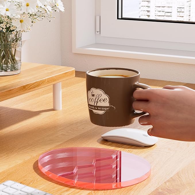Acrylic Coaster Decorative Plates,Office Desk Accessories, Clear Dinosaur Egg Shape Coffee Cup Decor, Perfect for Tabletop Protection and Display.