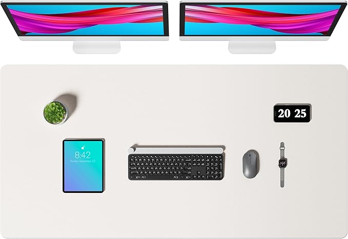 Aothia Faux Leather Desk Mat – Large Mouse Pad, Non-Slip PU Leather Blotter, Waterproof Writing Surface for Office and Home (Off-White, 47.2" x 23.6")