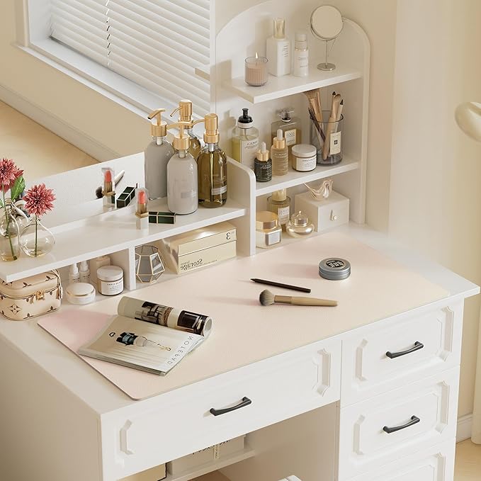 Aothia Faux Leather Desk Mat – Large Mouse Pad, Non-Slip PU Leather Blotter, Waterproof Writing Surface for Office and Home (Beige, 47.2" x 23.6")