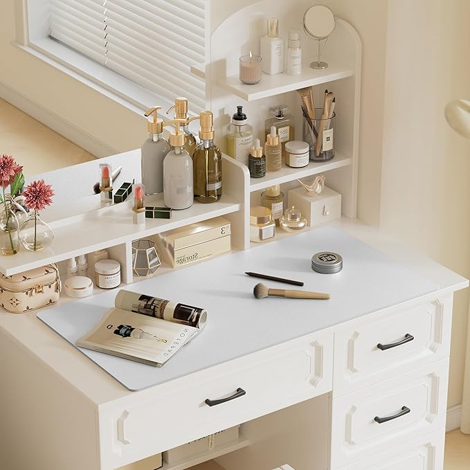 Aothia Faux Leather Desk Mat – Large Mouse Pad, Non-Slip PU Leather Blotter, Waterproof Writing Surface for Office and Home (Barely Grey, 47.2" x 23.6")