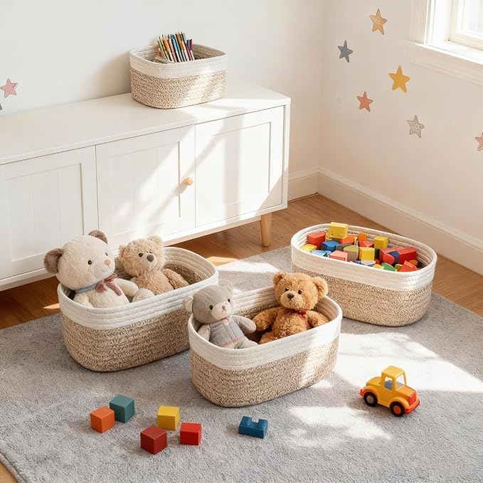 - Easy-Carry Handles: Designed with sturdy handles, these baskets are a breeze to move from room to room. Easily transport toys from the playroom, carry bathroom essentials, or relocate your projects—making organization flexible and effortless