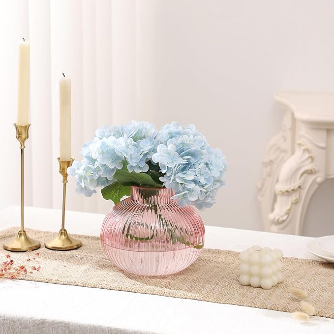 - Versatile Floral Pairing: With its narrow opening and round body, this pink glass vase perfectly supports tulips, hydrangeas, baby’s breath, and daisies.
