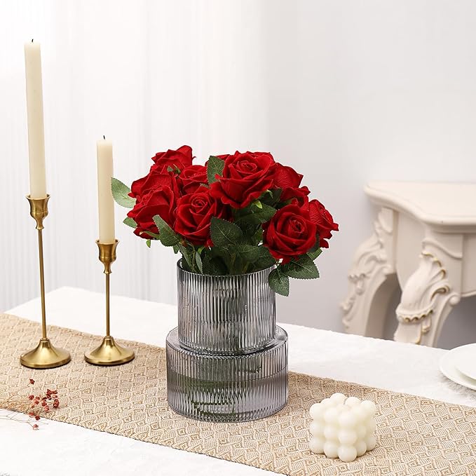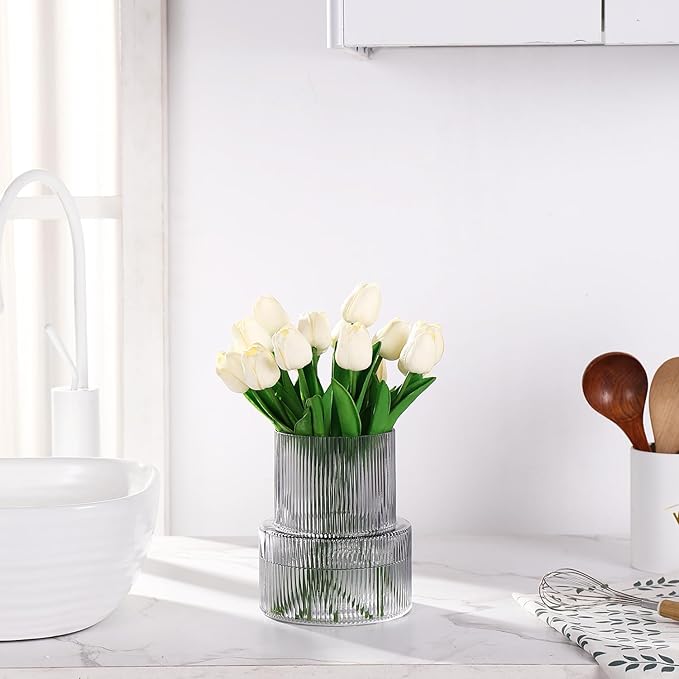 - Vase for Decor: YANWE1 Ribbed Vase is perfect for displaying your flower bouquets. This glass vase adds a touch of elegance and simplicity to your flower. Beautiful decoration for living room, dining room table, entryway, desk, shelf, coffee table, fireplace and porch.(专利产品)