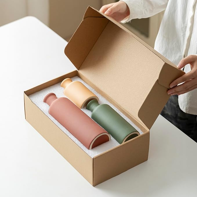 - MODERN DESIGN: Set of 3 ceramic vases in neutral tones featuring sleek bottle-shaped silhouettes perfect for contemporary home decor